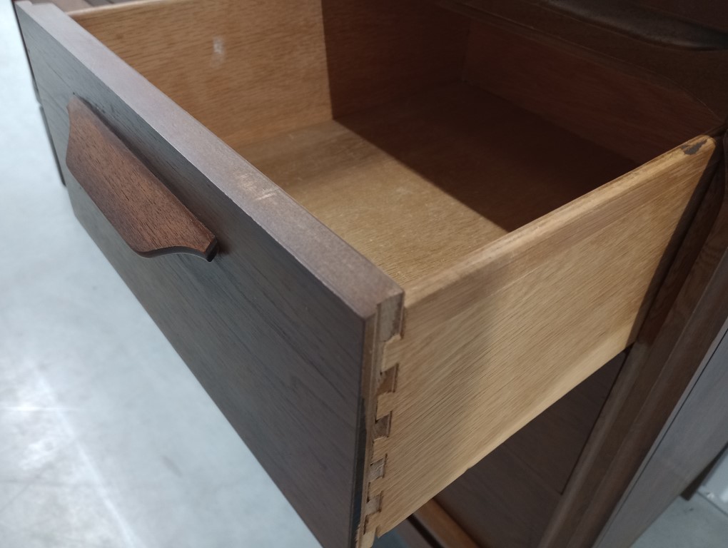 Description:This beautiful vintage walnut dresser has just been refinished leaving a near perfect surface free of scratches or damage. It features solid wood dovetail construction. c. 1950s / 1960s