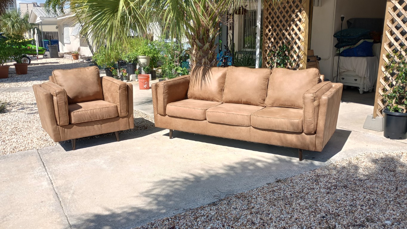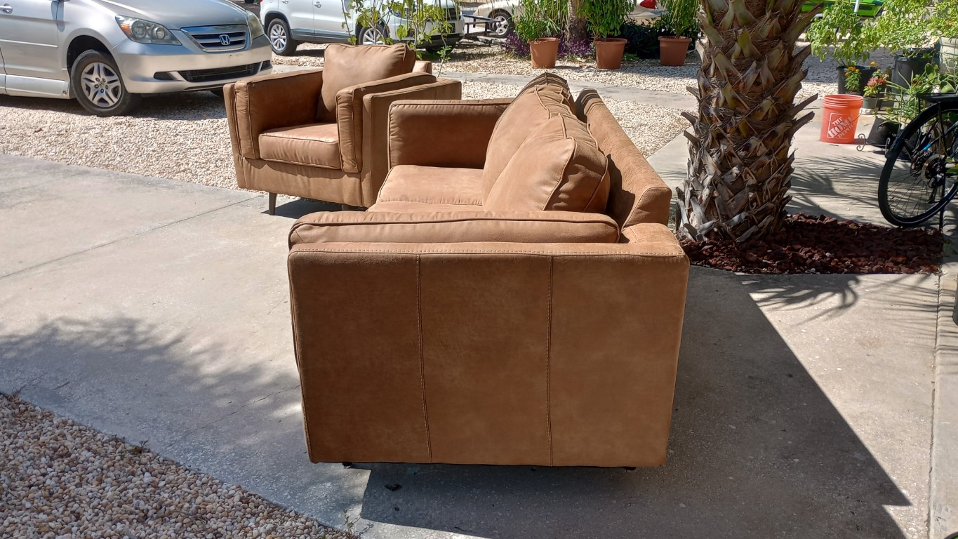 Description: This beautiful microsuede (faux suede) set is approximately one year old, purchased at Ashley Furniture for a total of $1,298.00 plus tax (and is still available for purchase if you want to add a loveseat to complete the set).